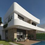 Het terras is zeer ruim namelijk 53 m² en de beplanting en de bijzondere tegels van het zwembad maken het mooie sfeertje compleet. De auto staat geparkeerd aan de badkamerzijde van de masterbedroom dus u kijkt vanaf uw terras niet op uw auto. Zeer goed over nagedacht! Via een trap waaronder nog een berging zit komt u op het dakterras van de woning waar u altijd zon zult hebben. Heerlijk genieten dus van deze prachtige villa’s in het altijd levendige Benijofar.